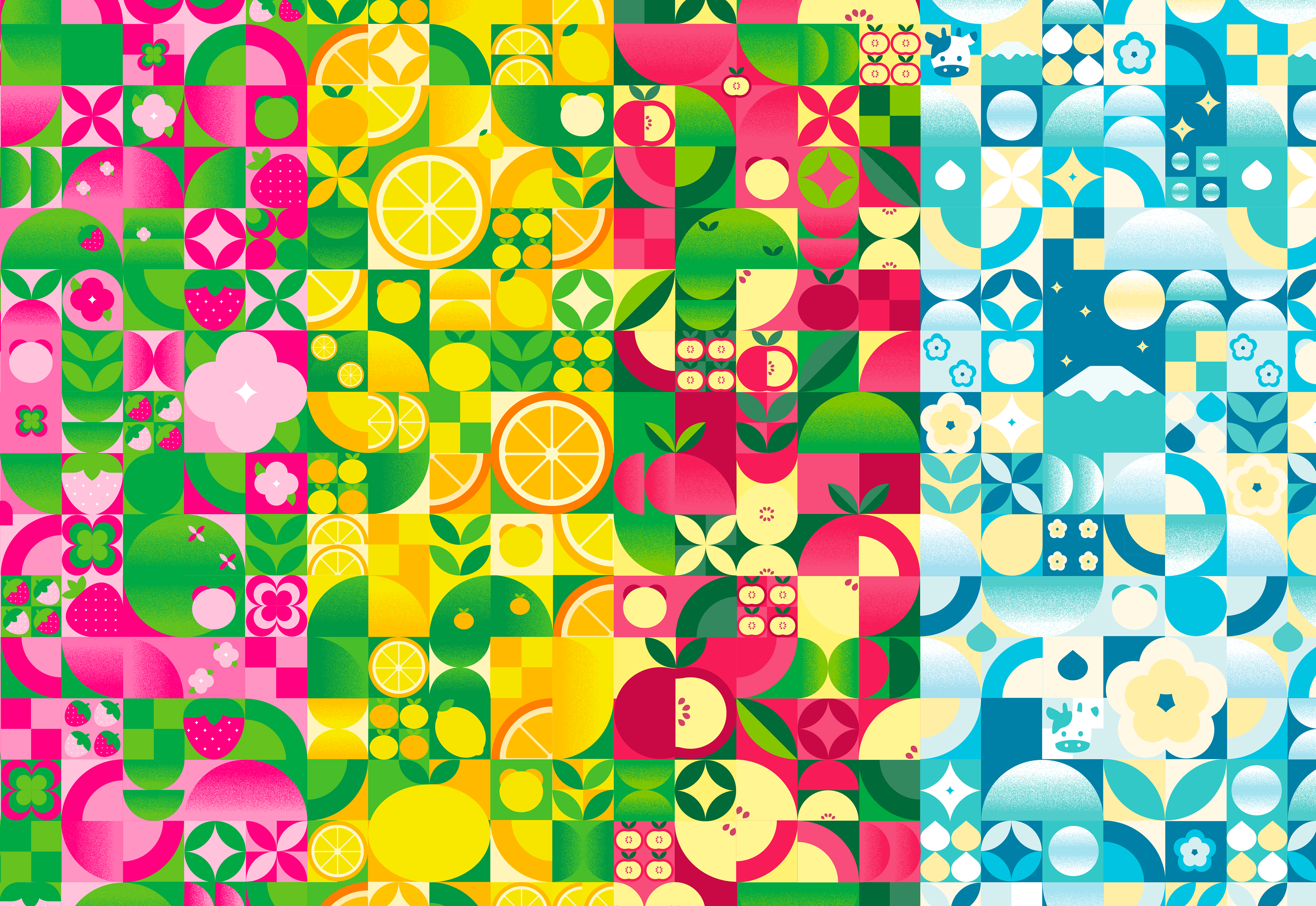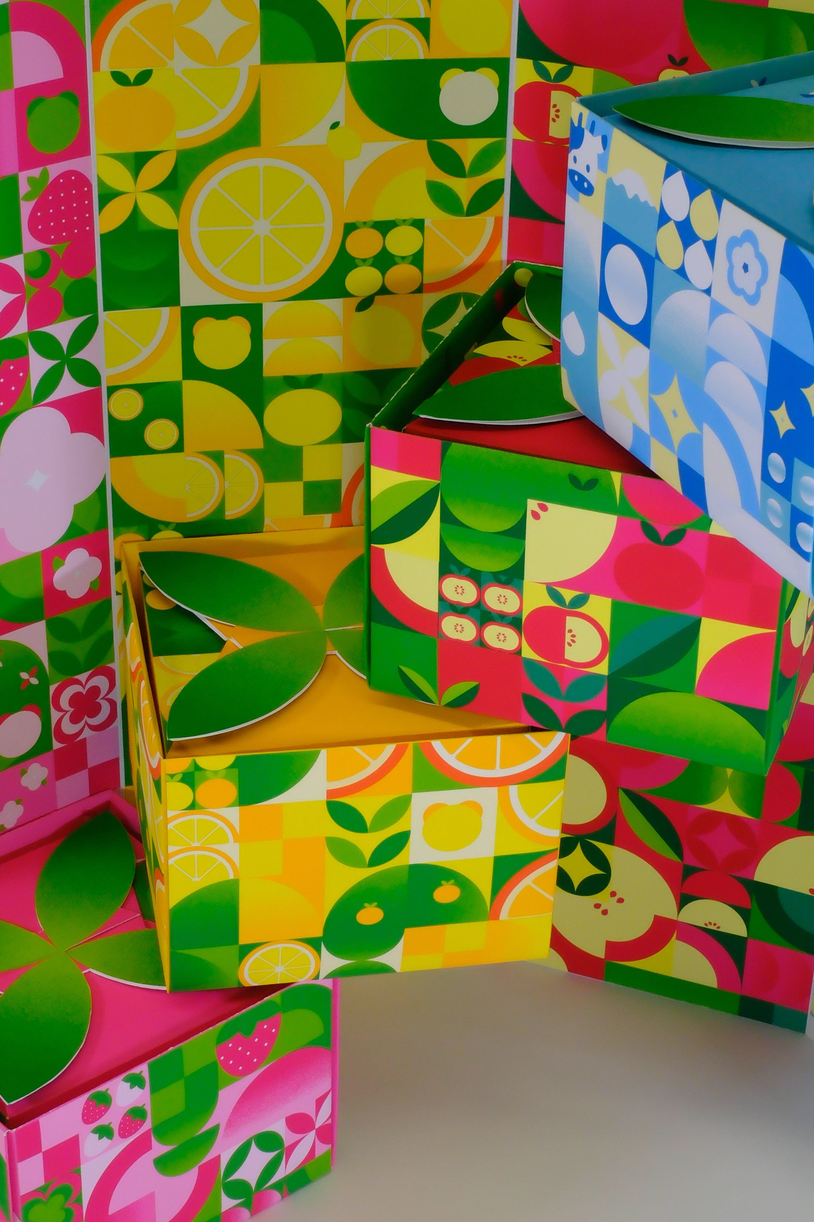 Inside Cookie Panda, featuring custom geometric illustrations that correspond to each season and flavor